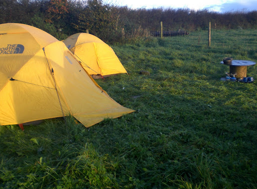 As it turned out, the camping actually worked out really well. It rained on and off, but never at awkward times, so we were spared things like pitching and striking camp in the rain. We camped at this beautiful site on an organic farm - fabulous location, and, because no-one else is crazy enough to camp at the end of October, we had it entirely to ourselves.